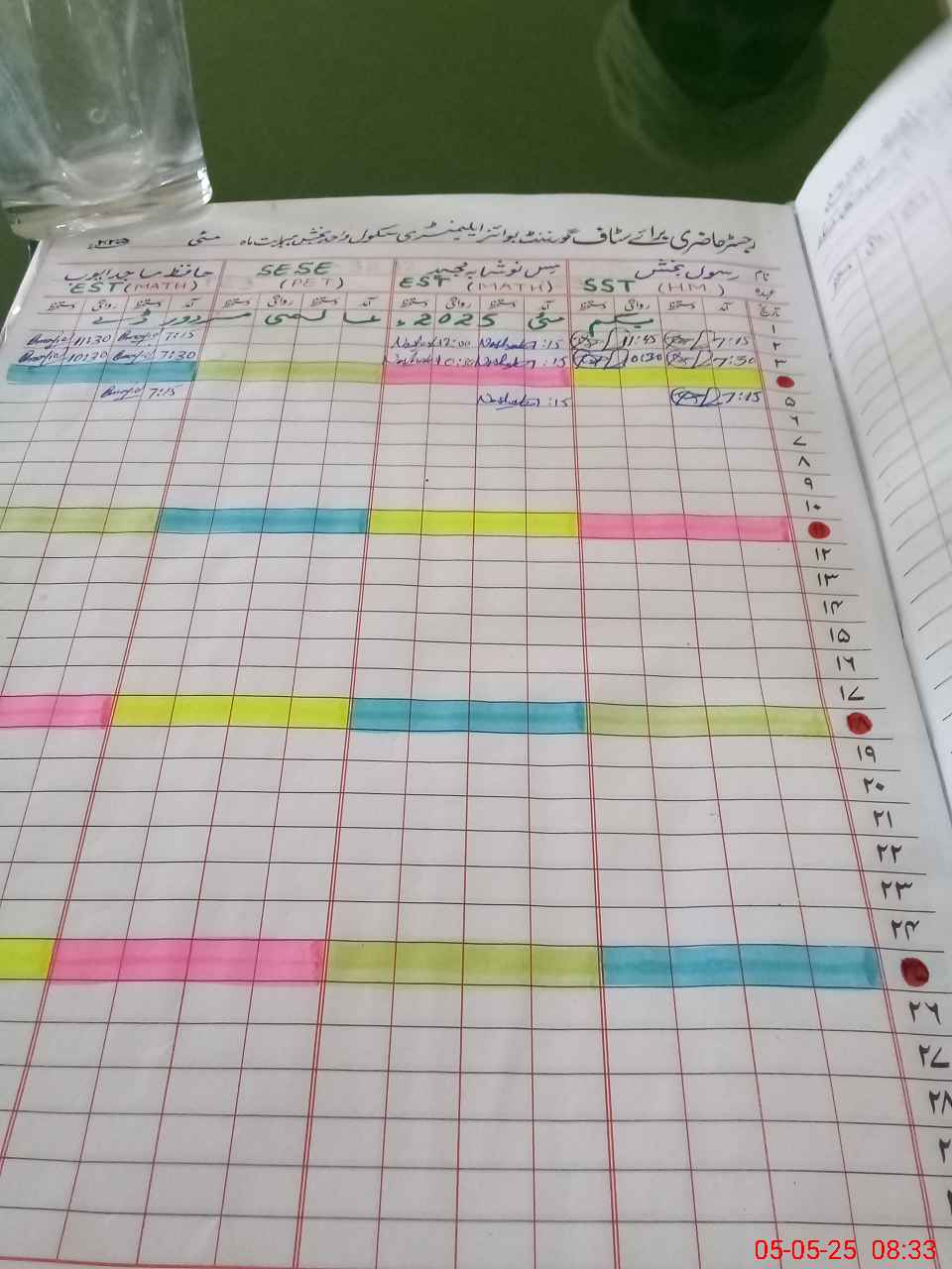 | No. of Students Present - Female | 14 | 0 | 120 | 122 | 65 | 72 | 62 | 58 | 50 | 40 | 30 | 633 | ||||
