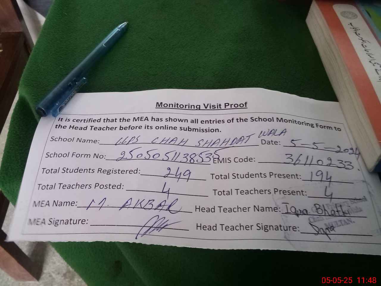 | EMIS Code: 36110233 | Name of School: GGPS CHAH SHAHADAT WALA MULTAN | |||