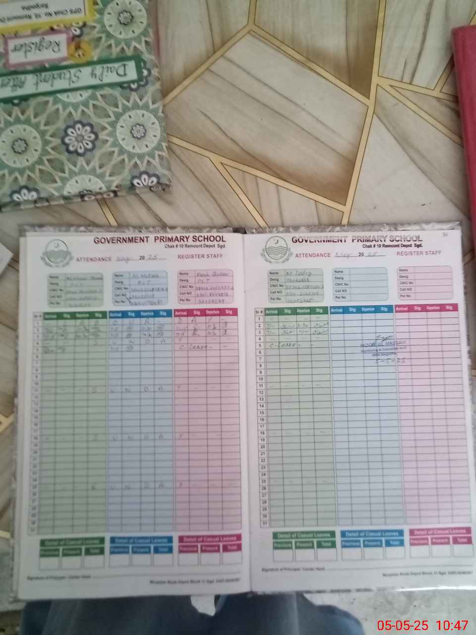 | CNIC | Full Name | Designation | R/C | Absence During Last Calender Month |