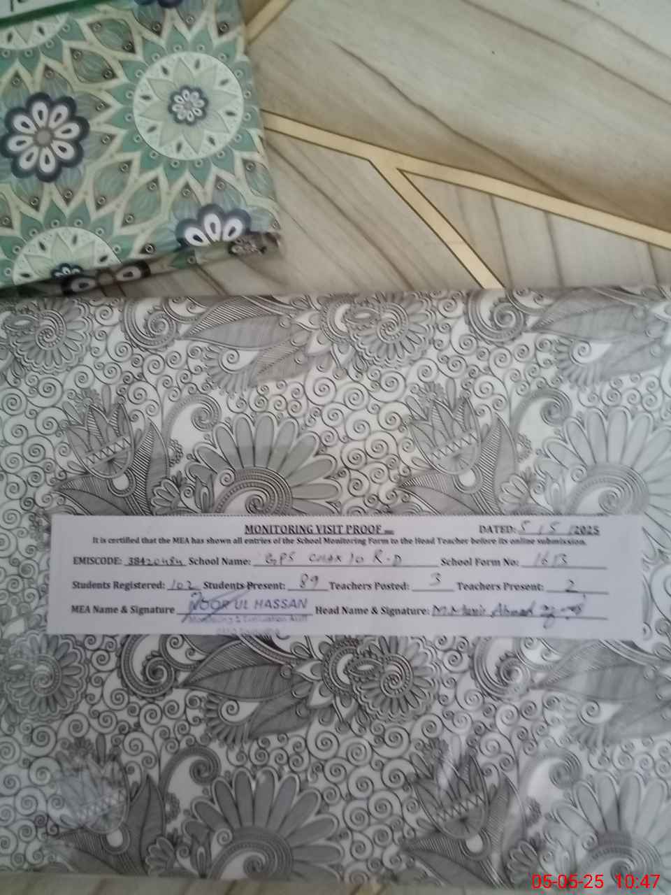 | Certified that this School was Inspected by the Undersigned MEA/DMO Today and the Information Stated Above is as Per Record. | |||||
