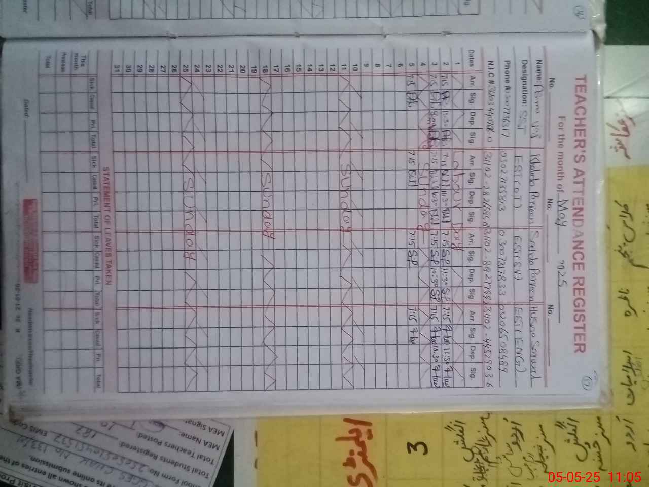 | Name: Sa**** Pa**** Designation: (School Headmaster's/Headmistress's) EST Phone/Cell Number: 03**** |