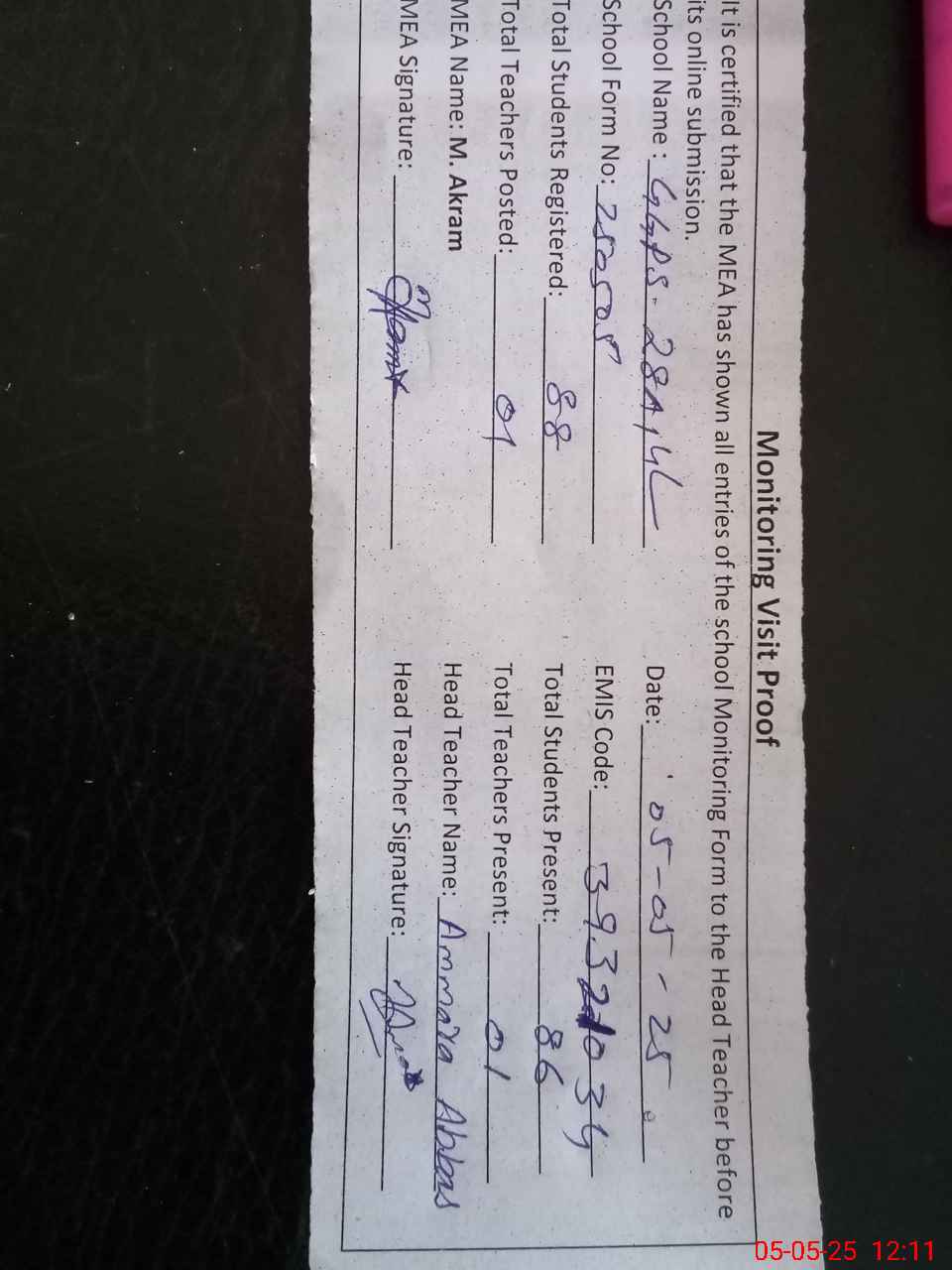 | EMIS Code: 39321034 | Name of School: GGPS CHAK NO. 28-A/4.L | |||