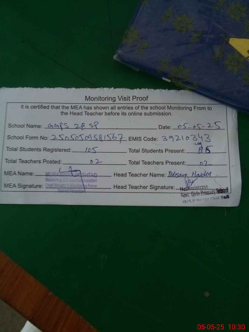 | EMIS Code: 39210343 | Name of School: GGPS 28 SP | |||