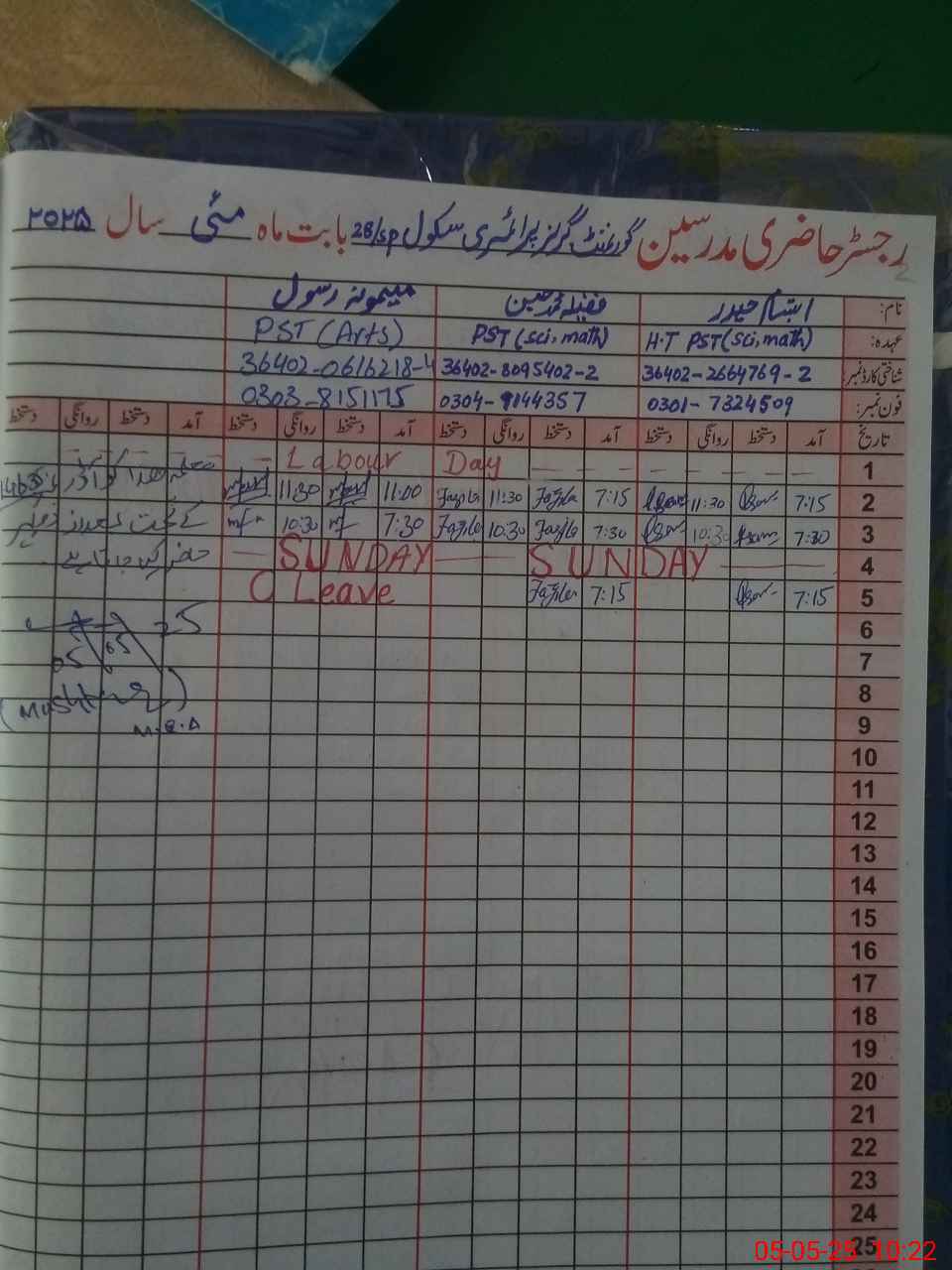 | Name: Ib**** Ha**** Designation: (School Headmaster's/Headmistress's) PST Phone/Cell Number: 03**** |