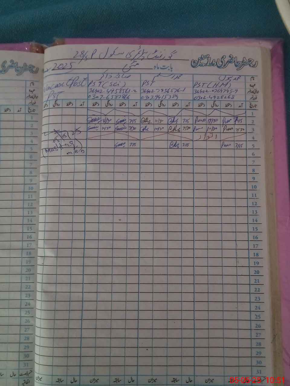 | Name: MU**** PU**** Designation: (School Headmaster's/Headmistress's) PST Phone/Cell Number: 03**** |