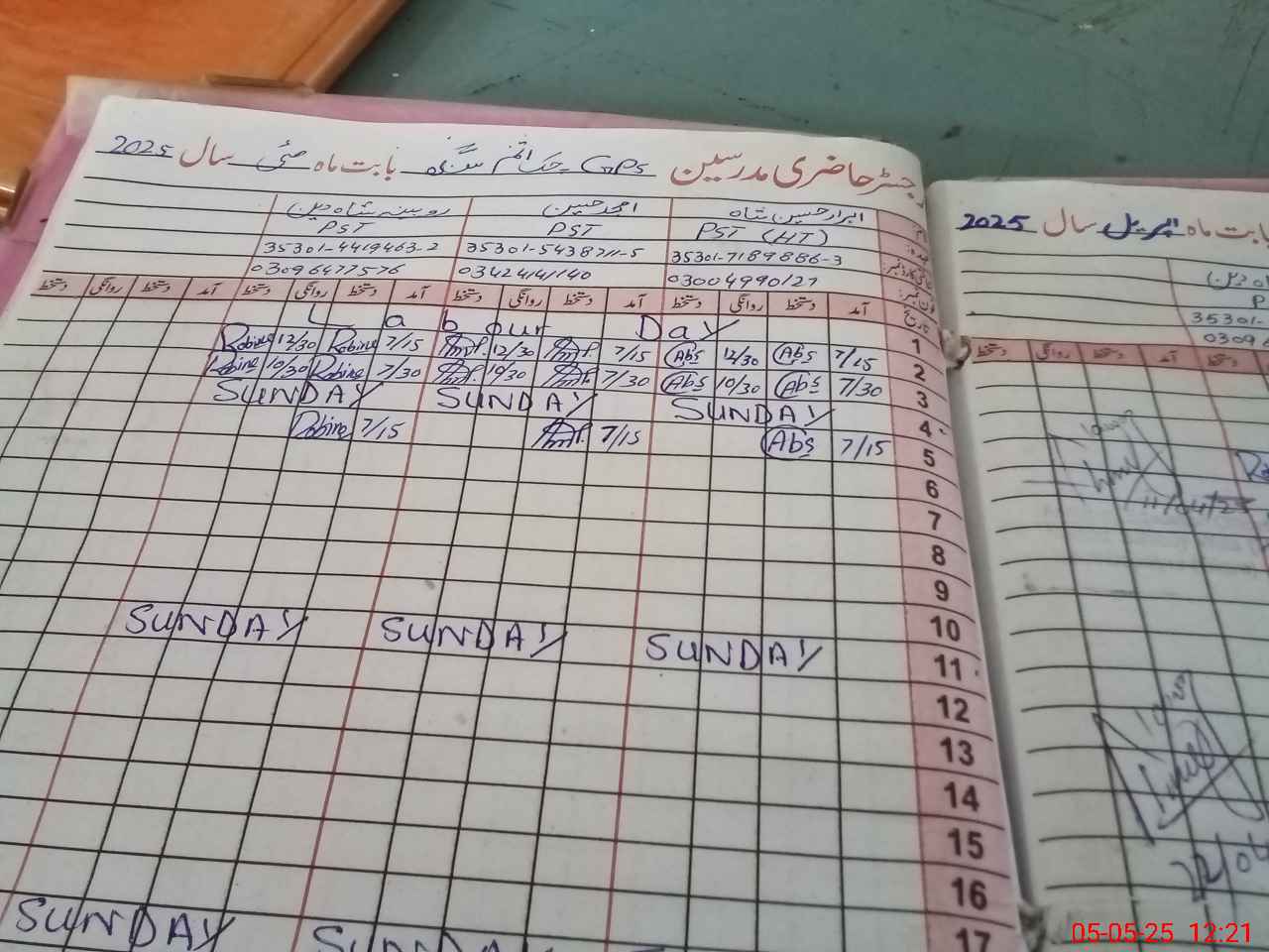 | Name: AB**** HU**** SH**** Designation: (School Headmaster's/Headmistress's) PST Phone/Cell Number: 03**** |
