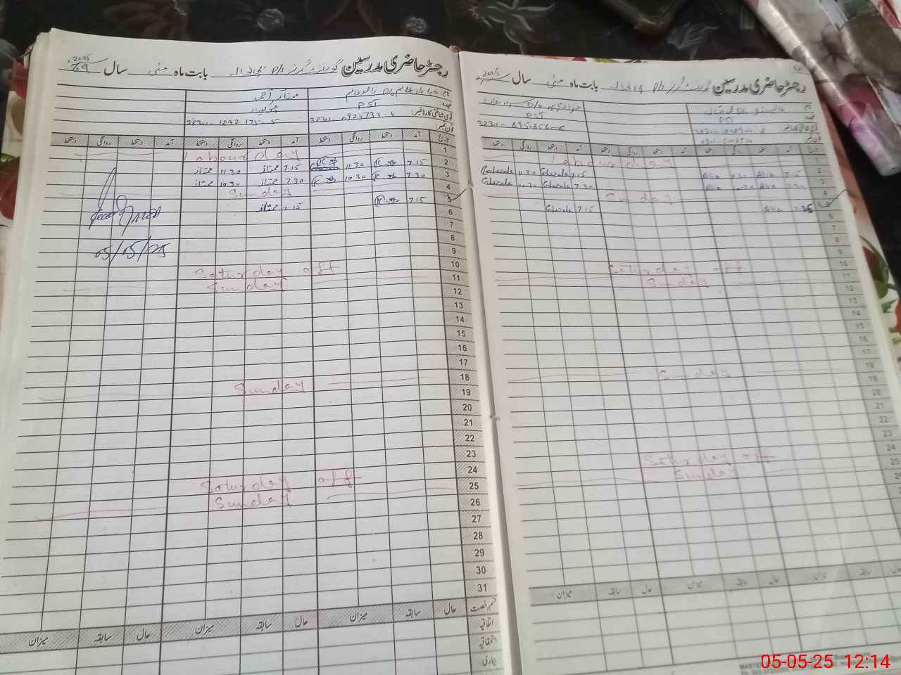 | CNIC | Full Name | Designation | R/C | Absence During Last Calender Month |