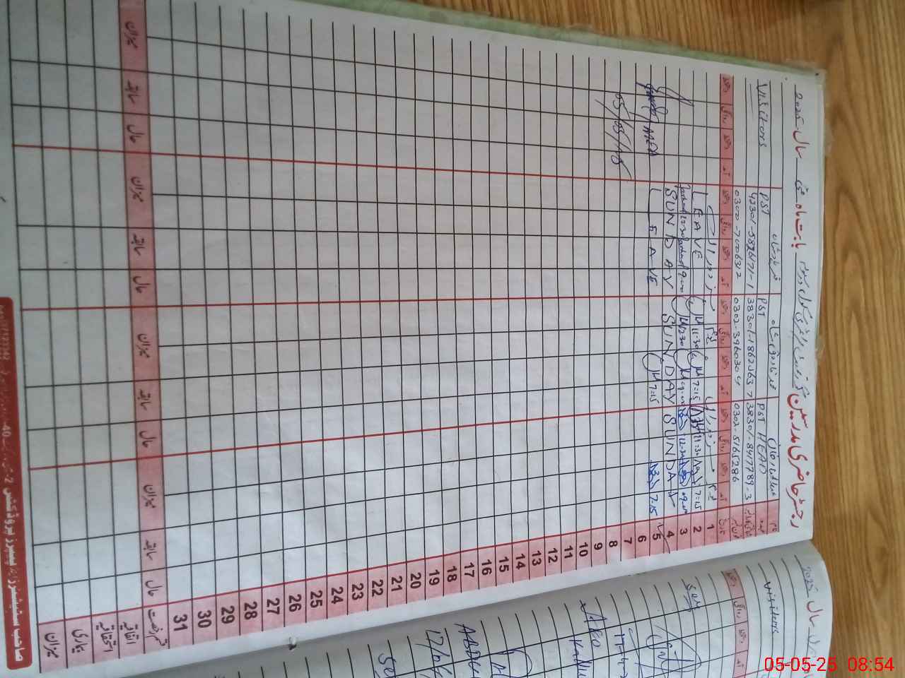 | CNIC | Full Name | Designation | R/C | Absence During Last Calender Month |