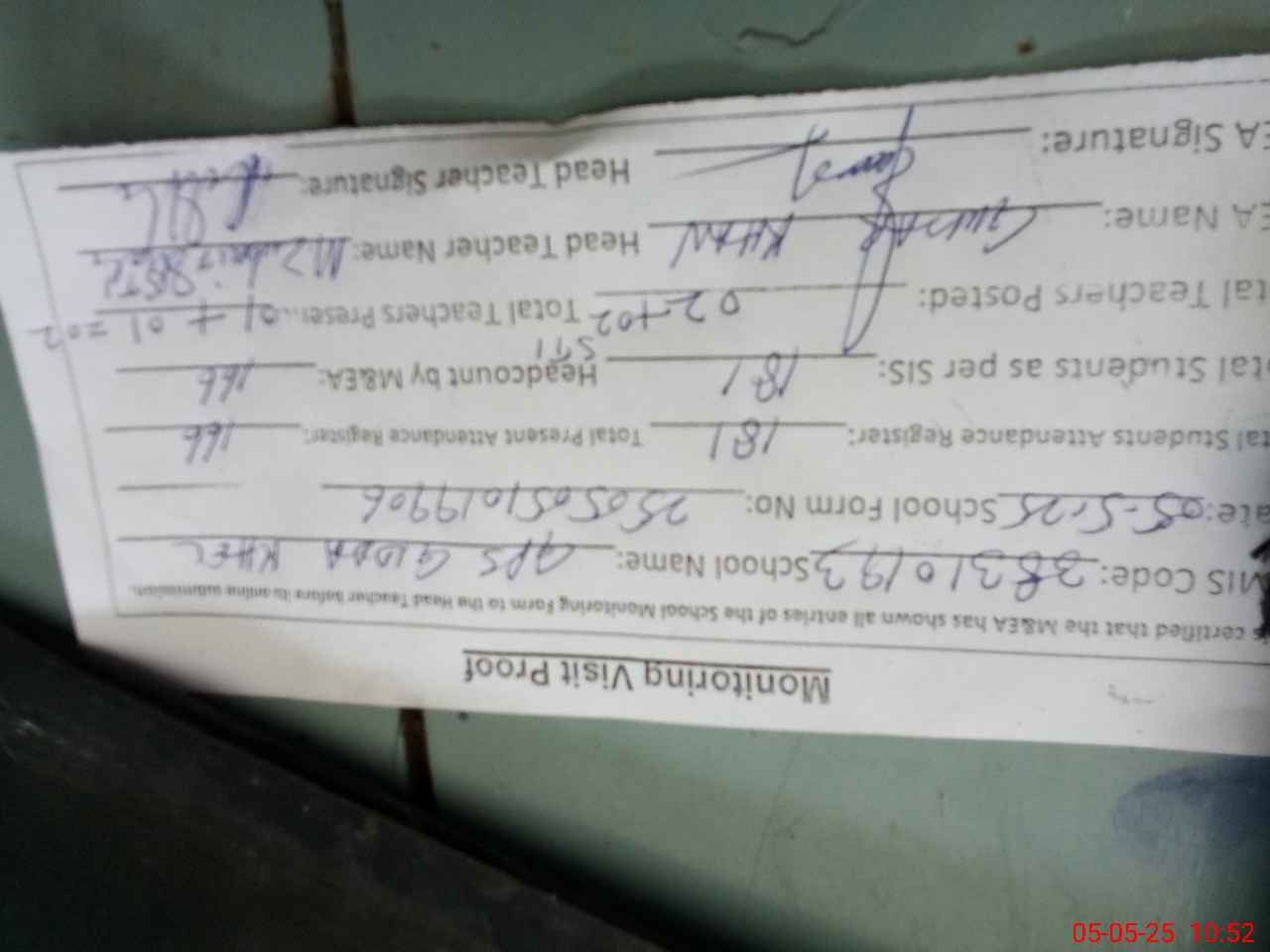 | Certified that this School was Inspected by the Undersigned MEA/DMO Today and the Information Stated Above is as Per Record. | |||||