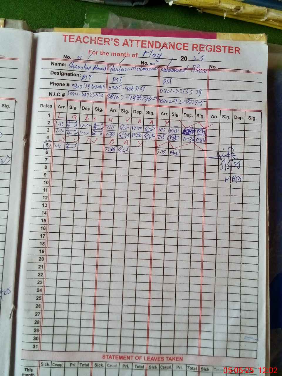 | Name: SH**** AH**** Designation: (School Headmaster's/Headmistress's) PST Phone/Cell Number: 03**** |