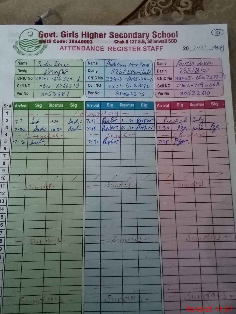 | Name: SA**** IR**** Designation: (School Headmaster's/Headmistress's) I/C PRINCIPAL Phone/Cell Number: 03**** |