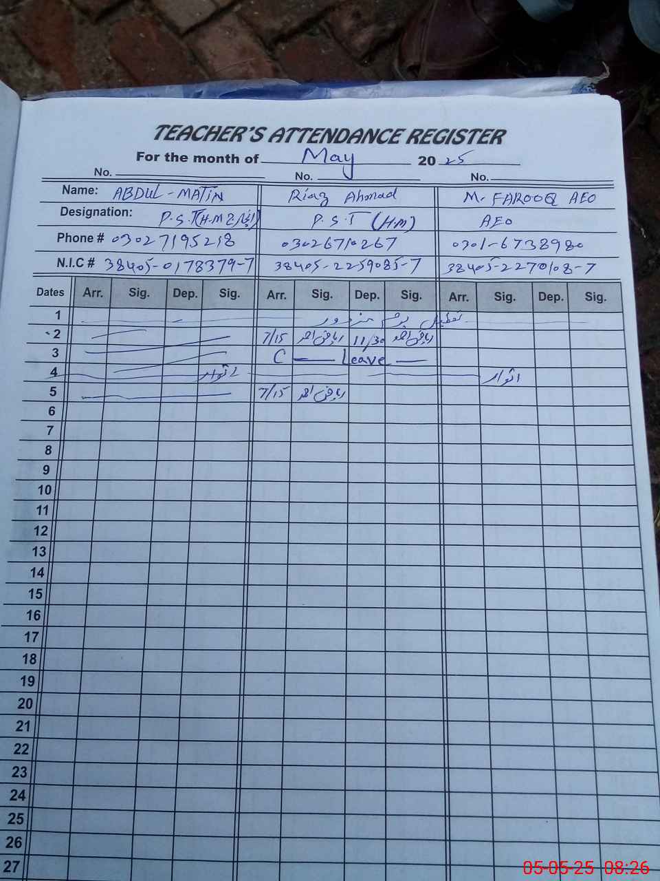 | Name: Ri**** Ah**** Designation: (School Headmaster's/Headmistress's) Pst Phone/Cell Number: 03**** |