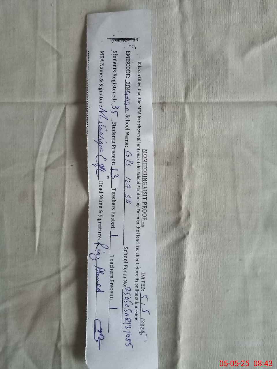 | EMIS Code: 38440130 | Name of School: GPS CHAK NO.129 SB | |||