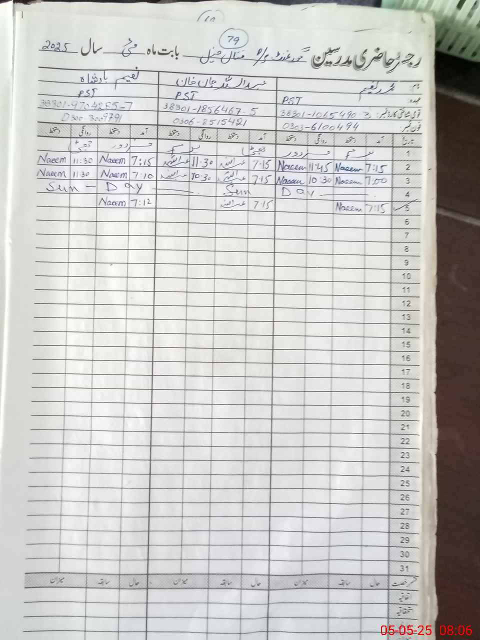 | Name: Mu**** Na**** Designation: (School Headmaster's/Headmistress's) PST Phone/Cell Number: 03**** |