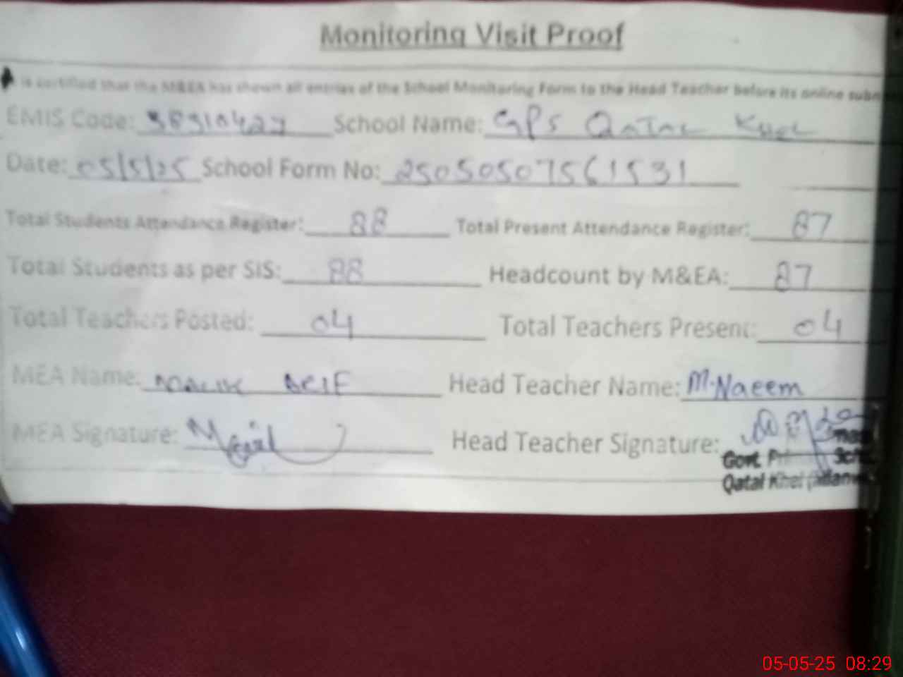 | EMIS Code: 38310427 | Name of School: GPS QATAL KHEL | |||