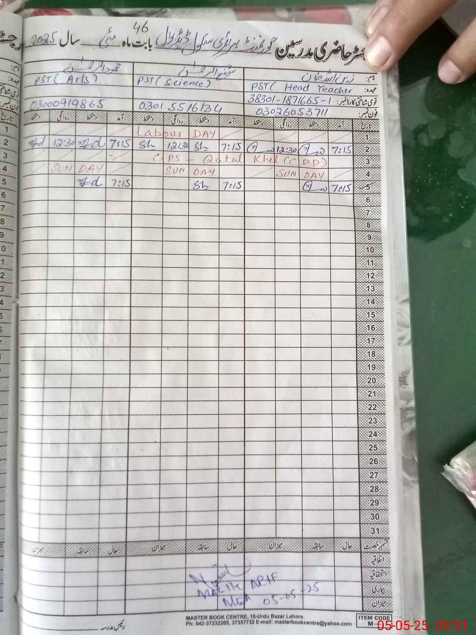 | Name: ZA**** UL**** KH**** Designation: (School Headmaster's/Headmistress's) PST Phone/Cell Number: 03**** |