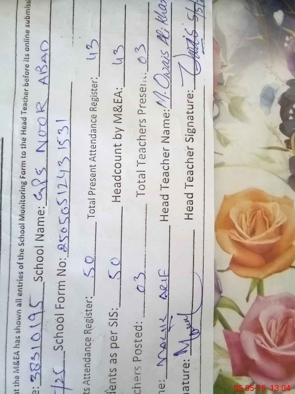 | Name: Mu**** Ow**** Kh**** Designation: (School Headmaster's/Headmistress's) Ese Phone/Cell Number: 03**** |