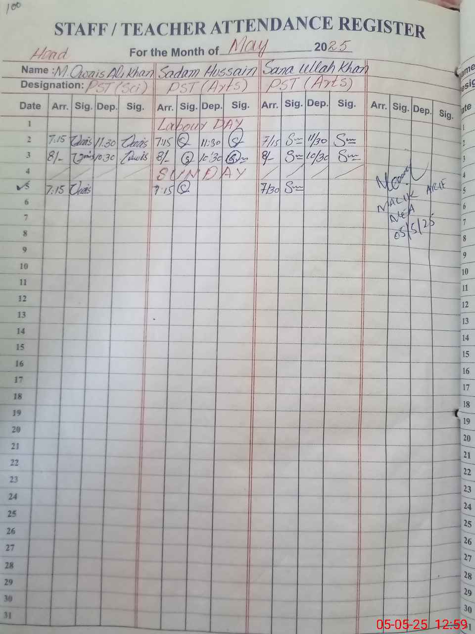 | CNIC | Full Name | Designation | R/C | Absence During Last Calender Month |