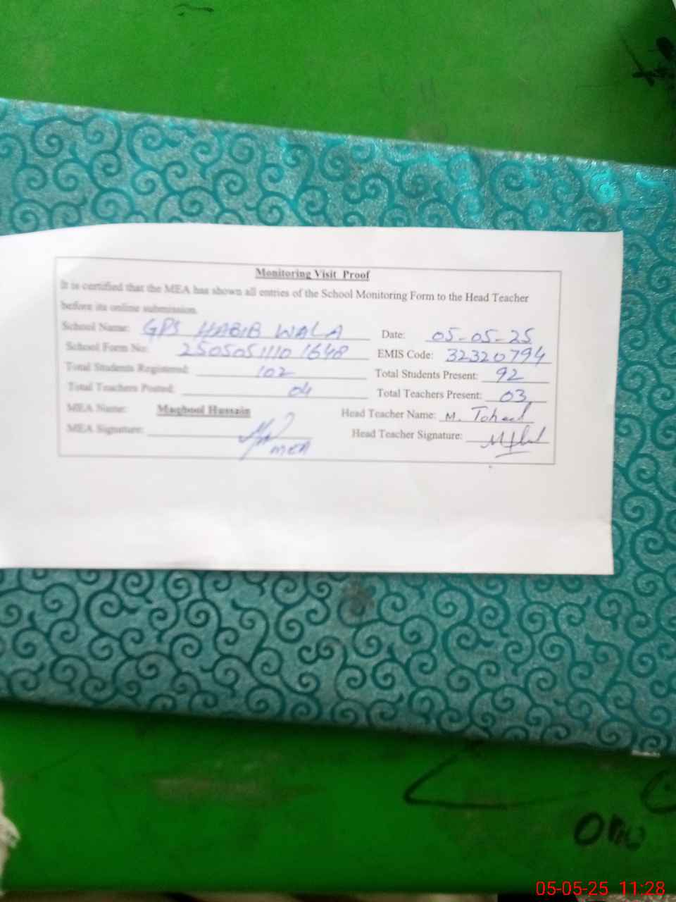 | EMIS Code: 32320794 | Name of School: GPS HABIB WALA | |||