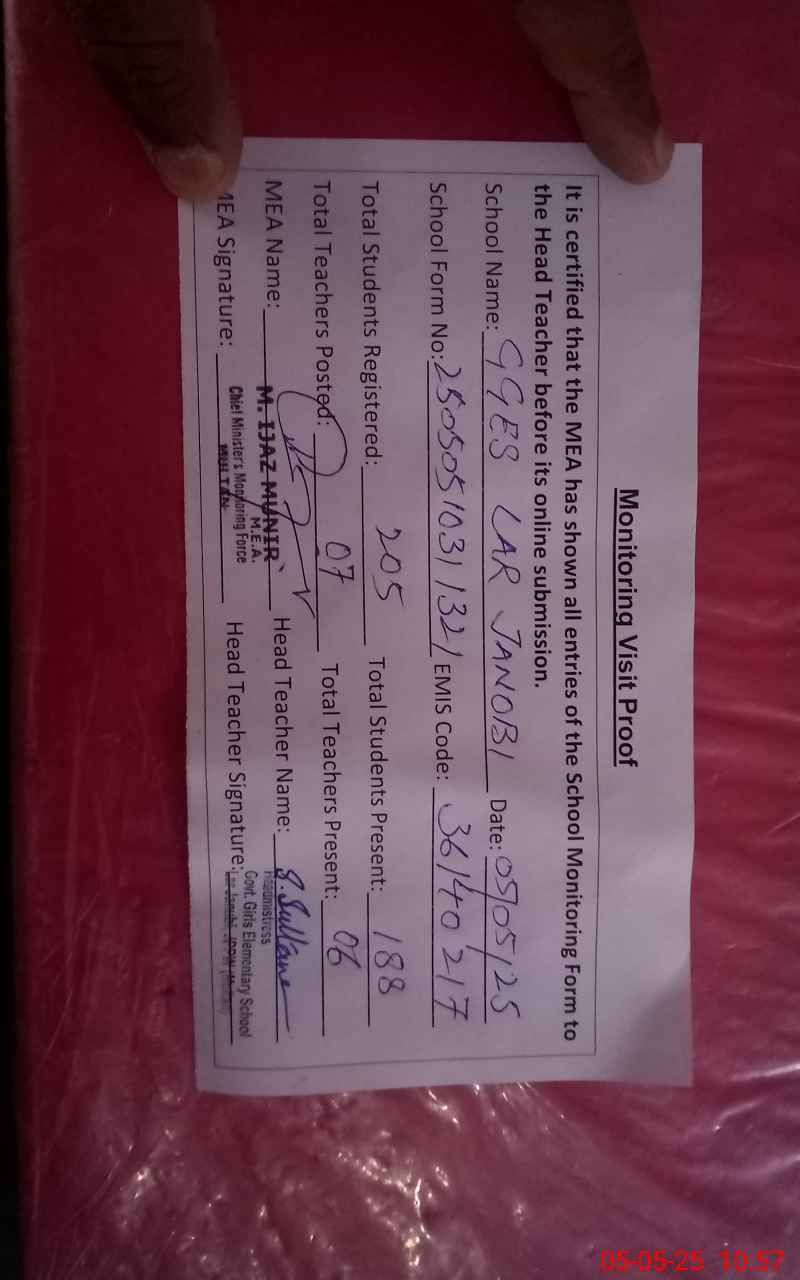 | Certified that this School was Inspected by the Undersigned MEA/DMO Today and the Information Stated Above is as Per Record. | |||||