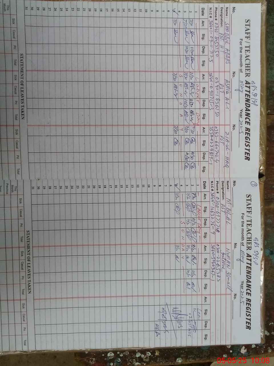 | Name: SH**** AB**** Designation: (School Headmaster's/Headmistress's) PST Phone/Cell Number: 03**** |