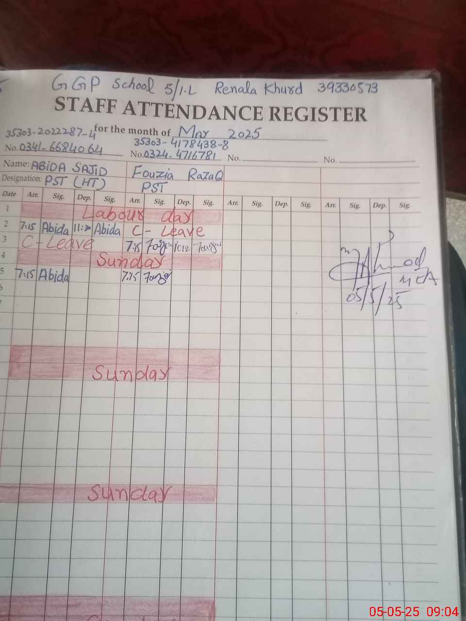 | Name: Ab**** Sa**** Designation: (School Headmaster's/Headmistress's) PST Phone/Cell Number: 03**** |