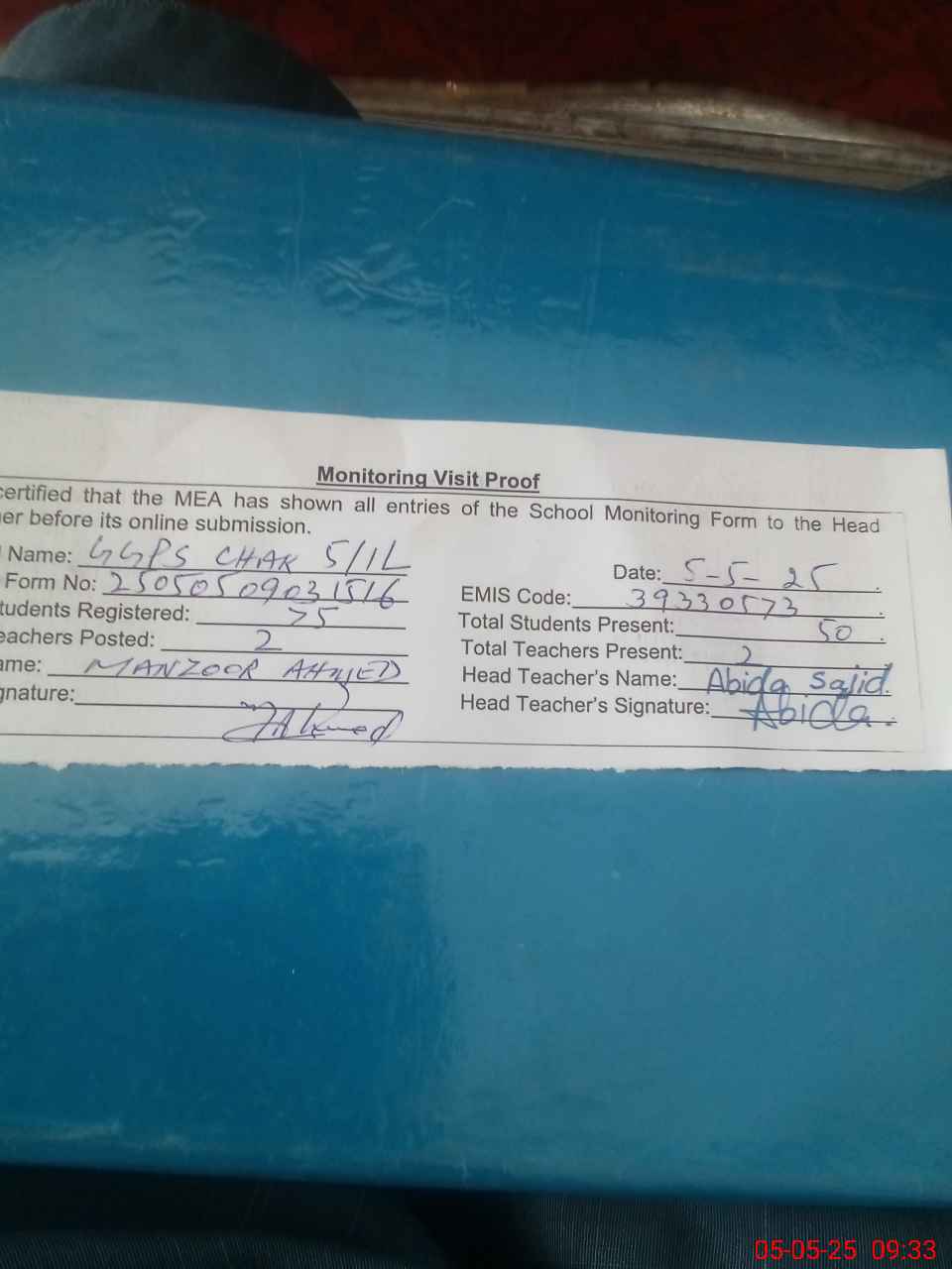 | Certified that this School was Inspected by the Undersigned MEA/DMO Today and the Information Stated Above is as Per Record. | |||||