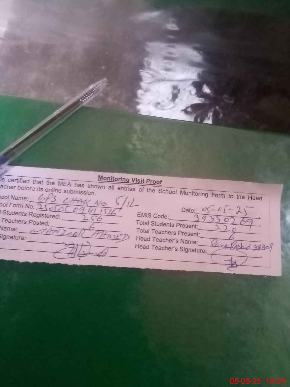| Attendance Register | Head Teacher | MEA with School | Visit Proof |