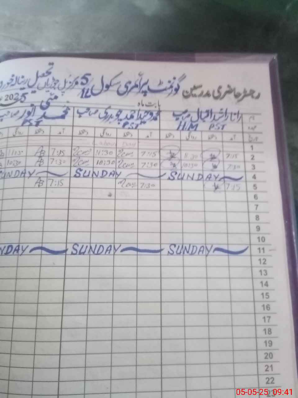 | CNIC | Full Name | Designation | R/C | Absence During Last Calender Month |