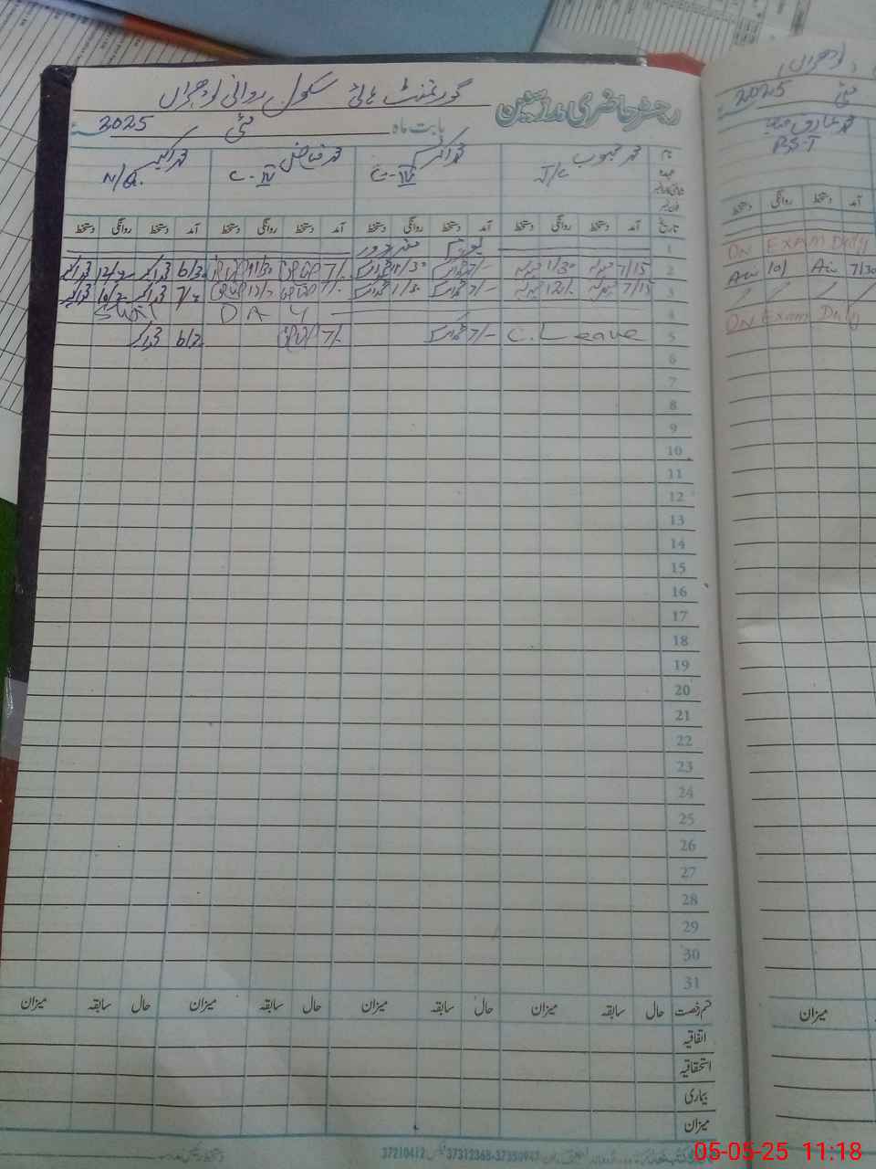 | CNIC | Full Name | Designation | R/C | Absence During Last Calender Month |