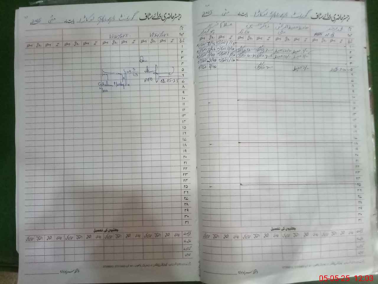 | CNIC | Full Name | Designation | R/C | Absence During Last Calender Month |