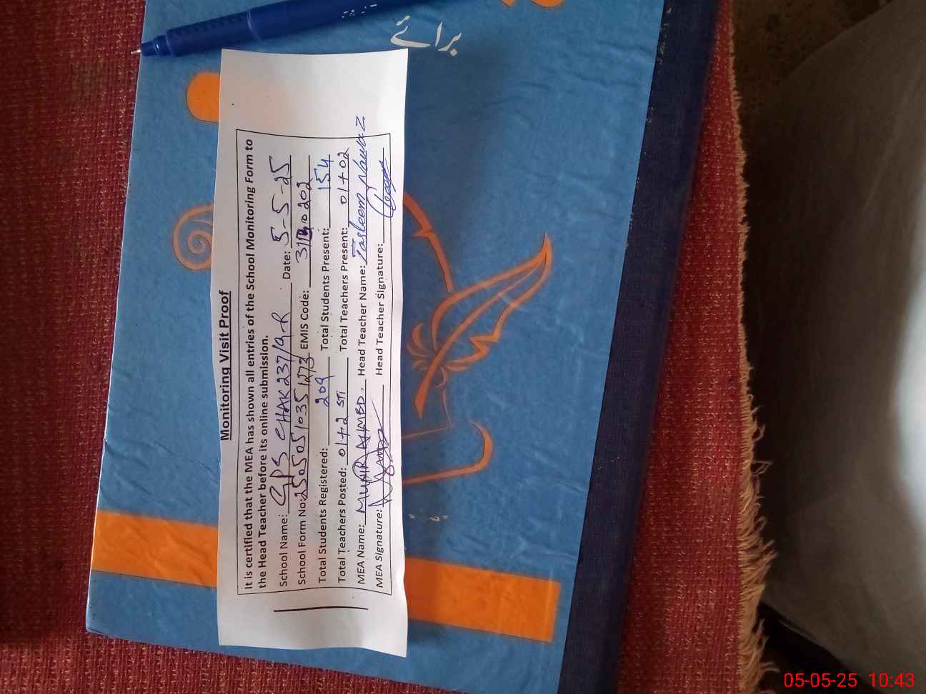 | EMIS Code: 31130202 | Name of School: GPS CHAK NO. 237/9-R NORTH | |||