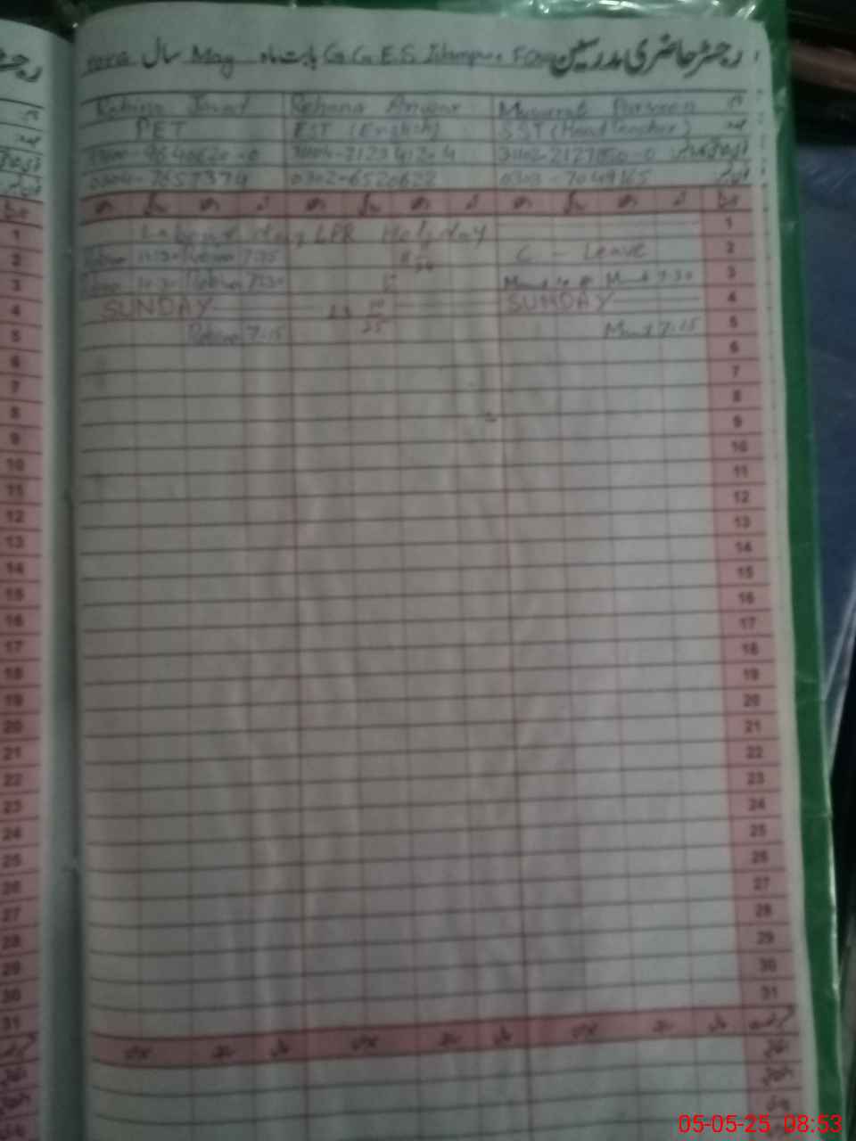 | 31**** | Hu**** Fa**** | 3 | 1 | 0 | 0 | 0 | 0 | 0 | 0 | 0 | 0 | 0 | Absent (Un-Authorized) |