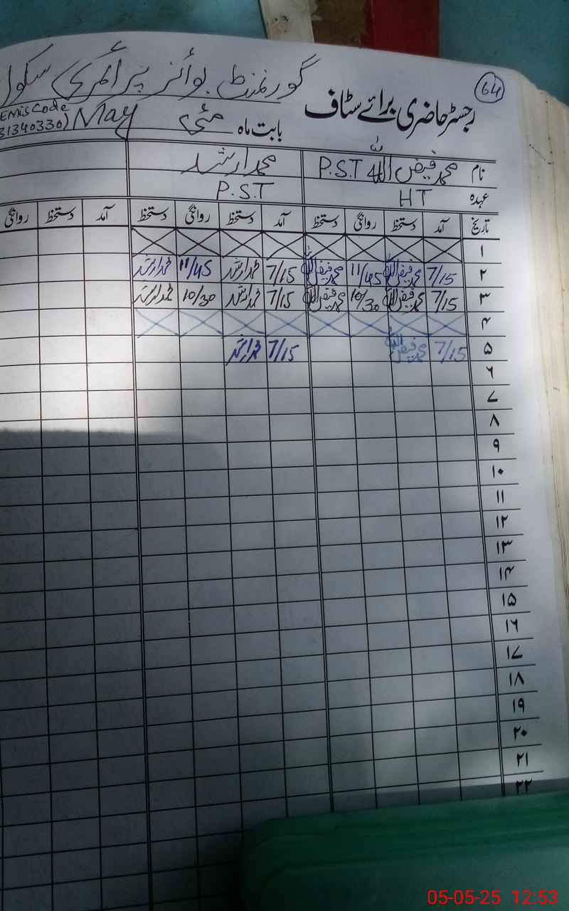 | Name: Mu**** Fa**** Designation: (School Headmaster's/Headmistress's) PST Phone/Cell Number: 03**** |