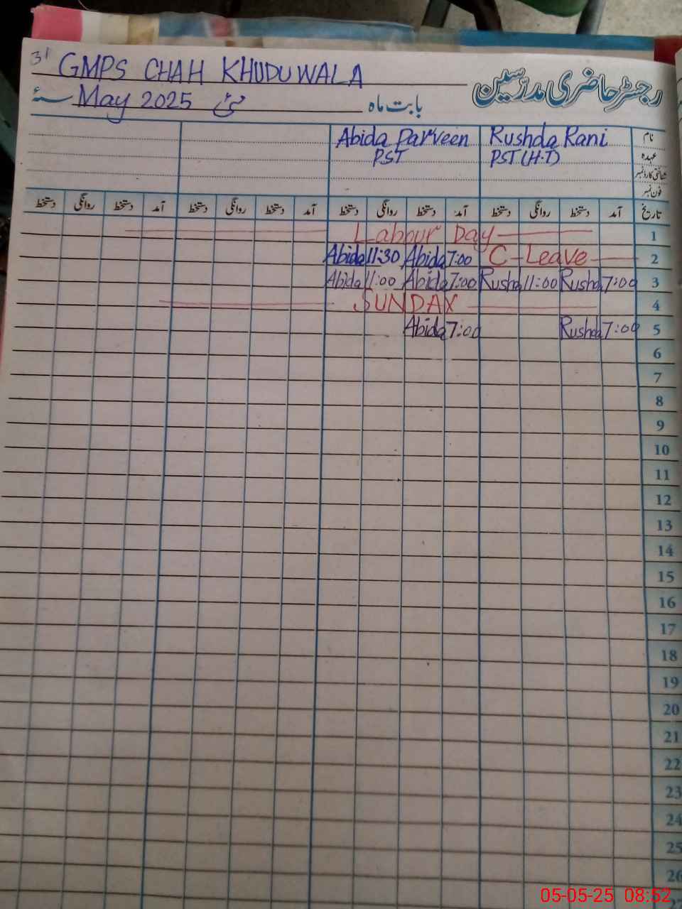 | CNIC | Full Name | Designation | R/C | Absence During Last Calender Month |