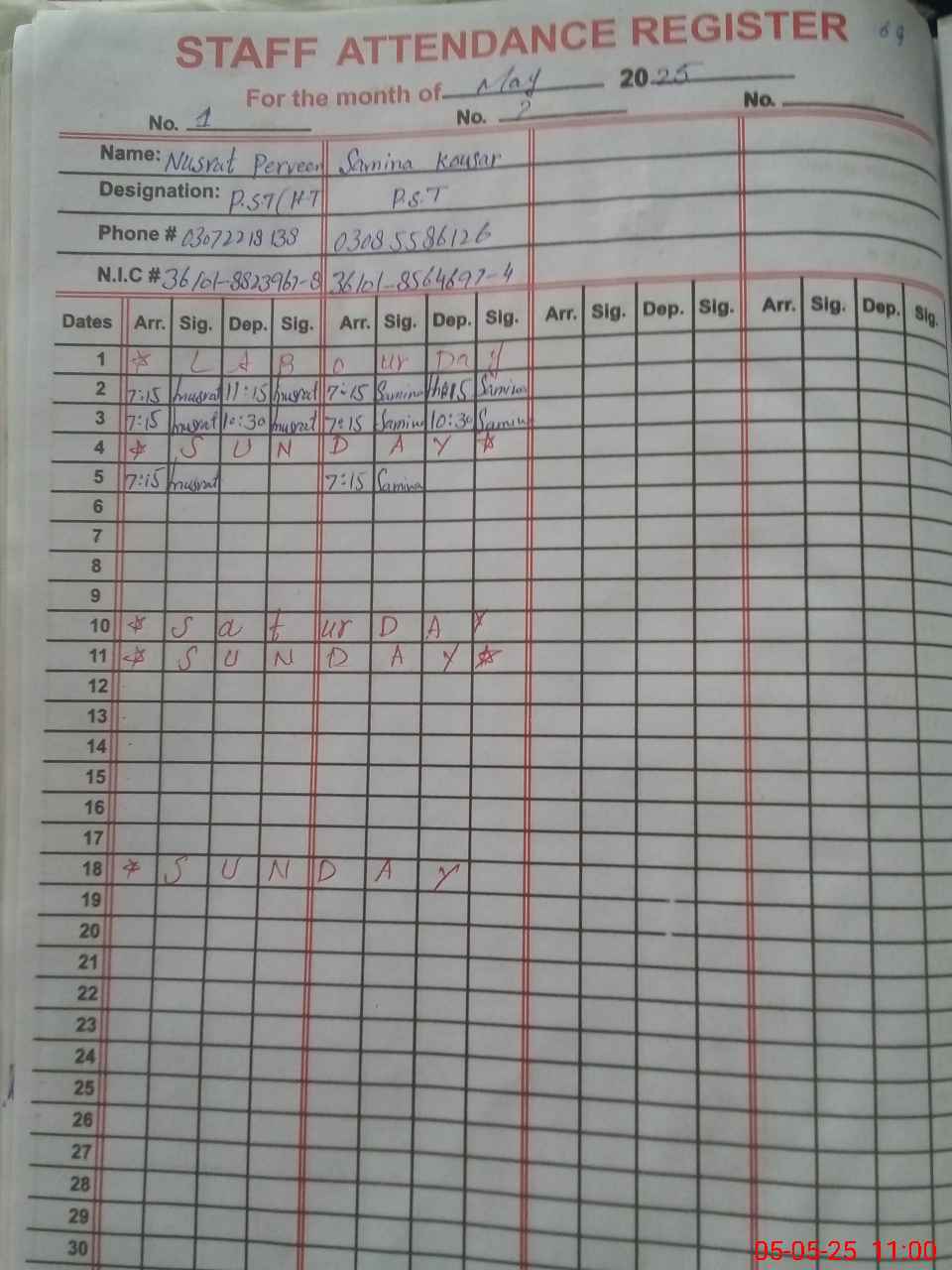 | Name: NU**** PA**** Designation: (School Headmaster's/Headmistress's) PST Phone/Cell Number: 03**** |