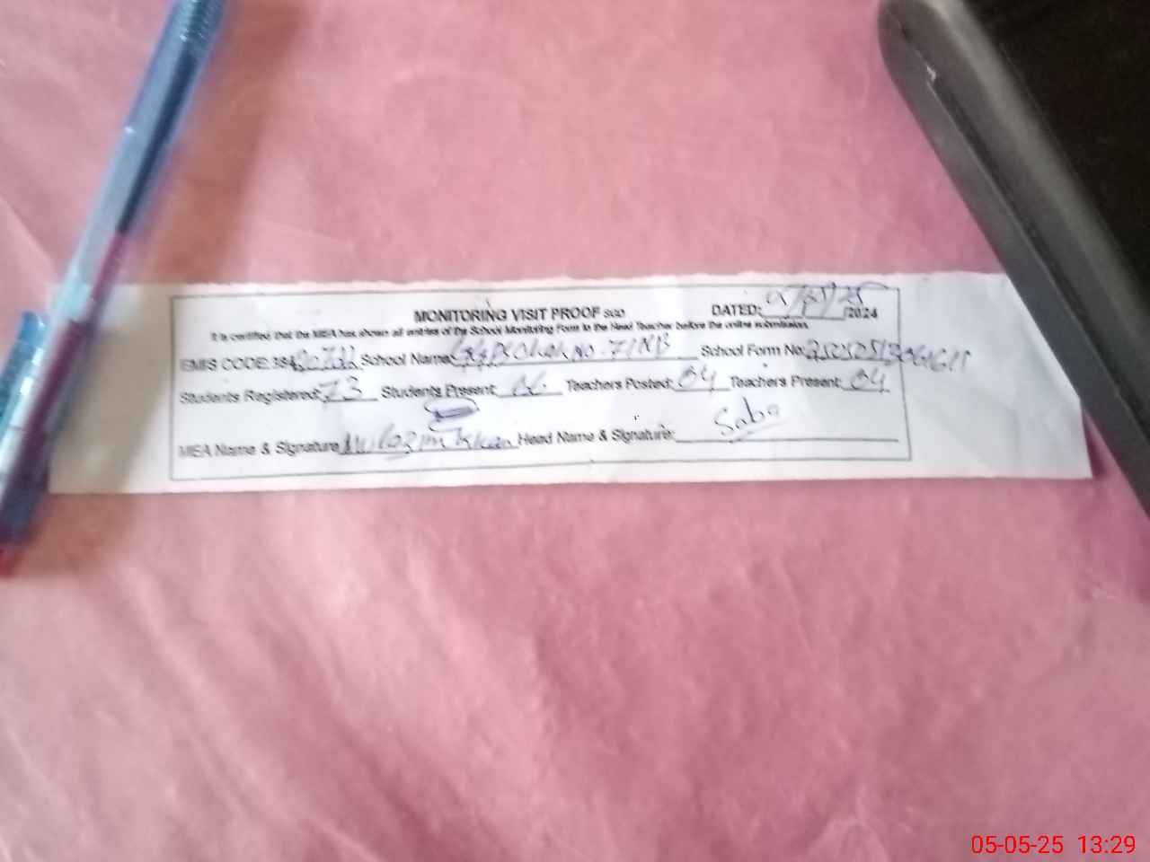 | Attendance Register | Head Teacher | MEA with School | Visit Proof |