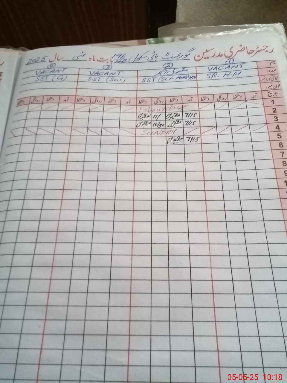 | CNIC | Full Name | Designation | R/C | Absence During Last Calender Month |