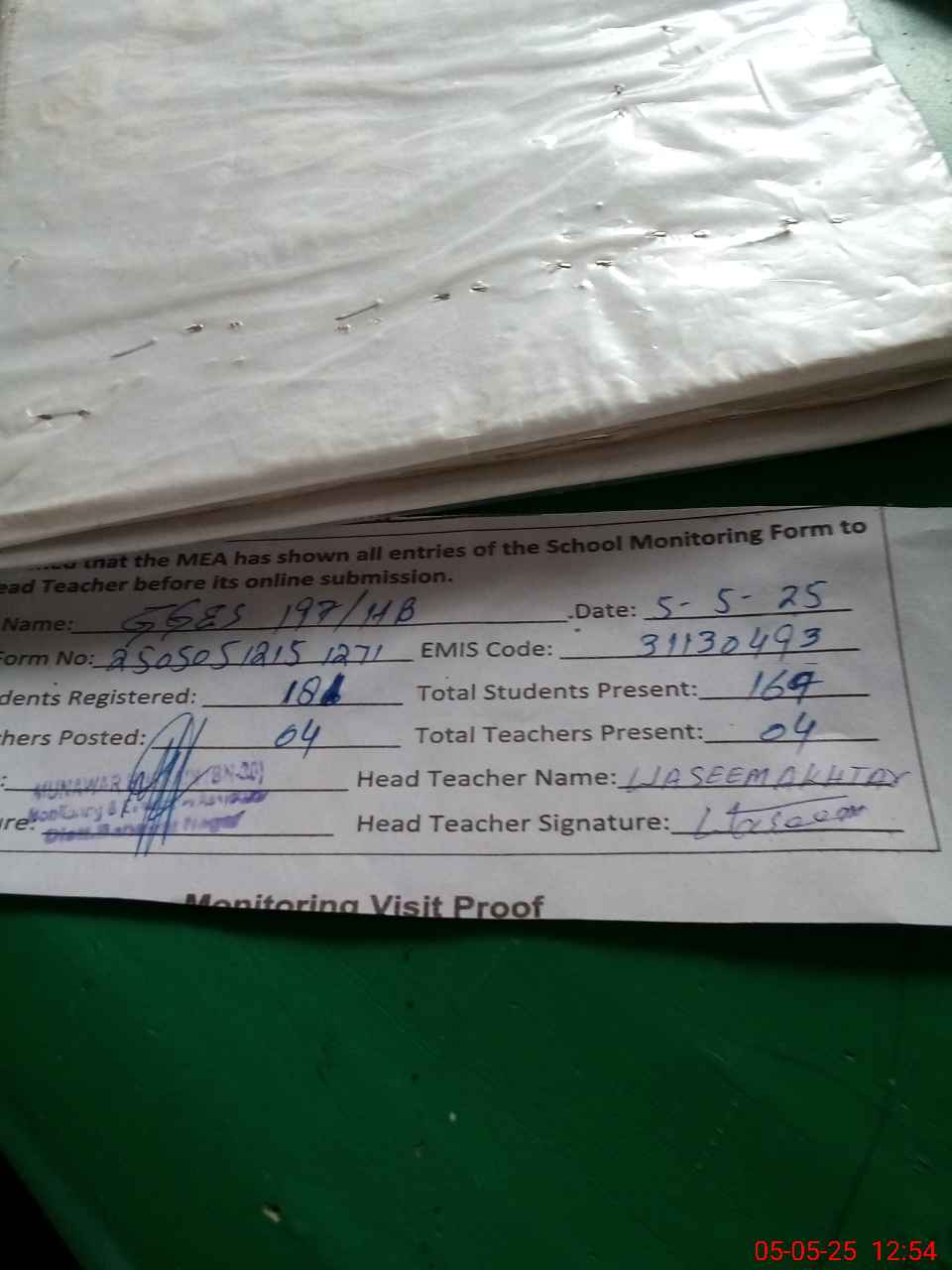 | EMIS Code: 31130493 | Name of School: GGES CHAK NO. 197/HB | |||