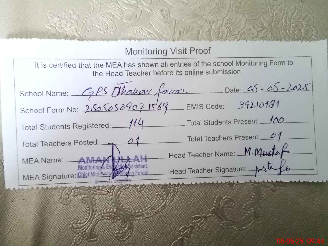 | EMIS Code: 39210181 | Name of School: GPS DHAKAR FARM PO PAKPATTAN | |||