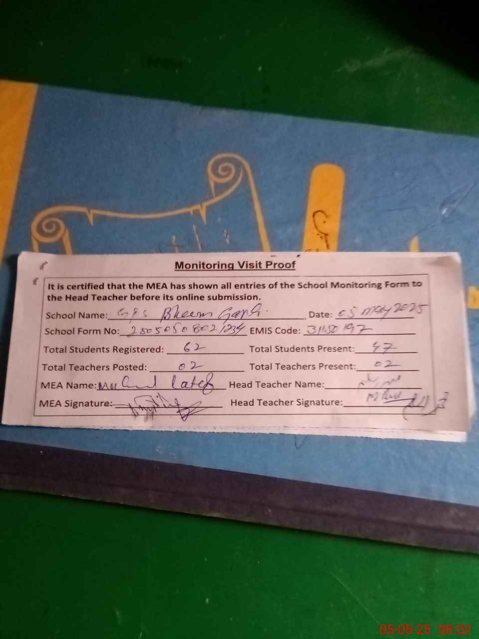| EMIS Code: 31150197 | Name of School: GPS BHEEM GARH | |||