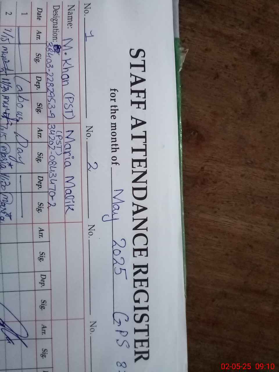 | Name: MU**** KH**** Designation: (School Headmaster's/Headmistress's) PST Phone/Cell Number: 03**** |