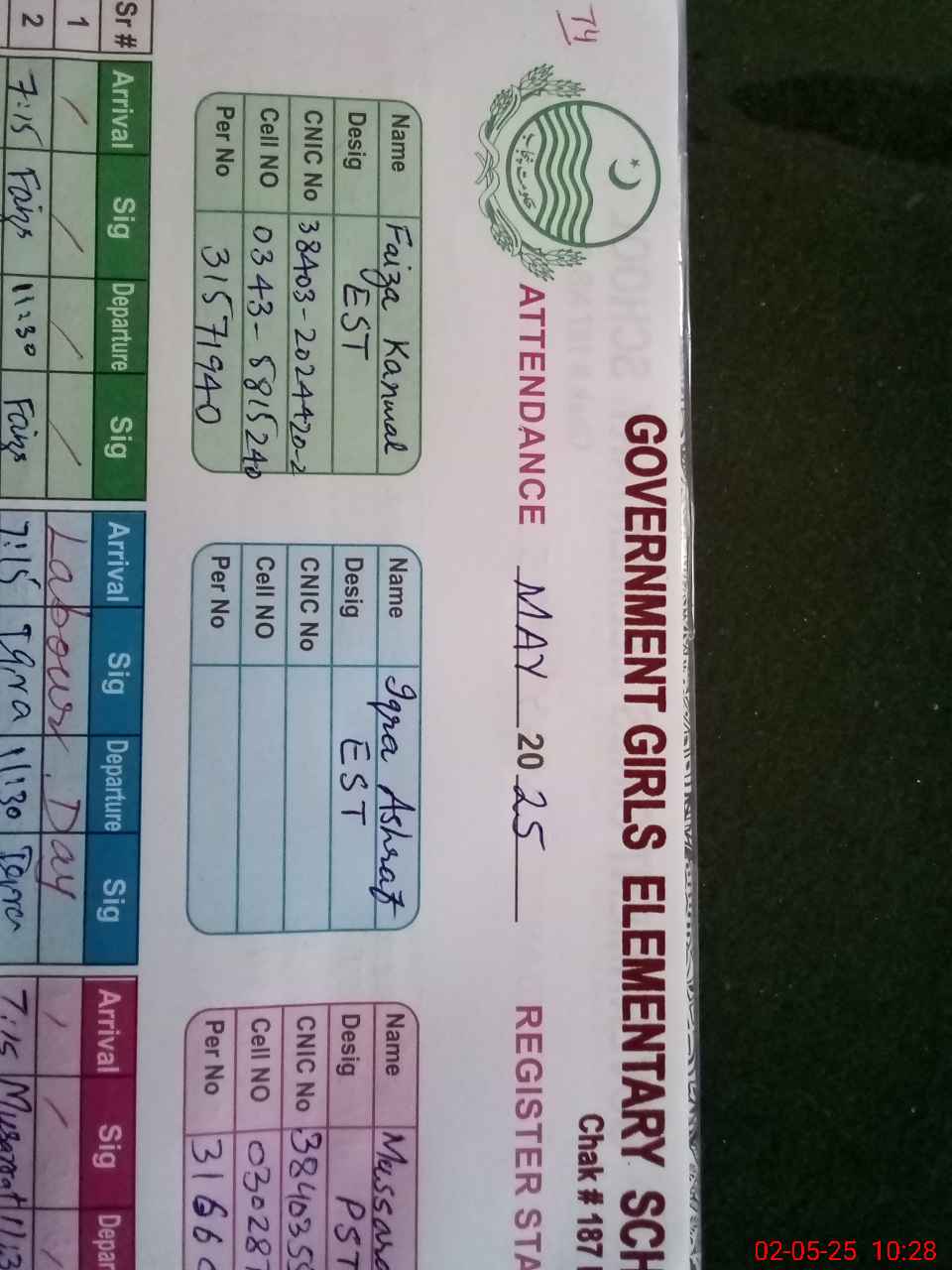 | Name: NA**** PE**** Designation: (School Headmaster's/Headmistress's) SST Phone/Cell Number: 03**** |