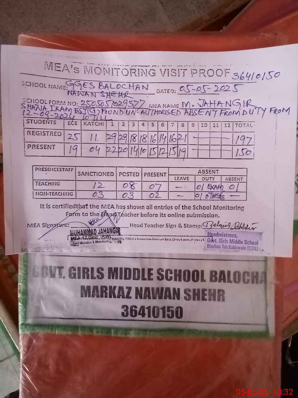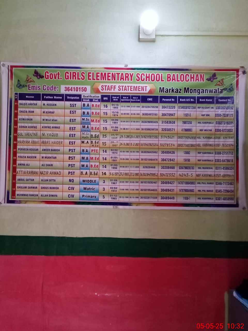 | EMIS Code: 36410150 | Name of School: GGES BALOCHAN, NAWAN SHEHR | |||