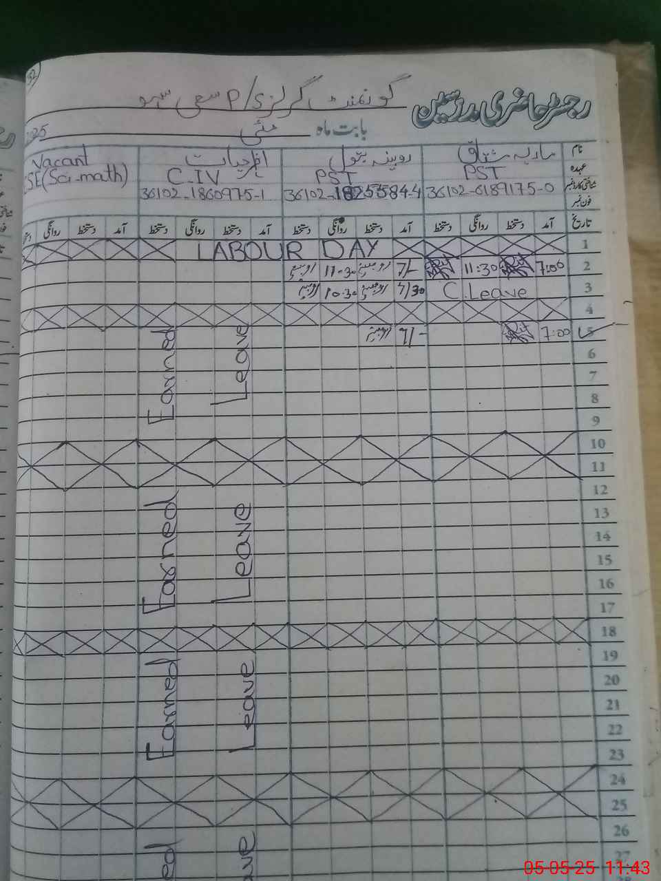 | CNIC | Full Name | Designation | R/C | Absence During Last Calender Month |