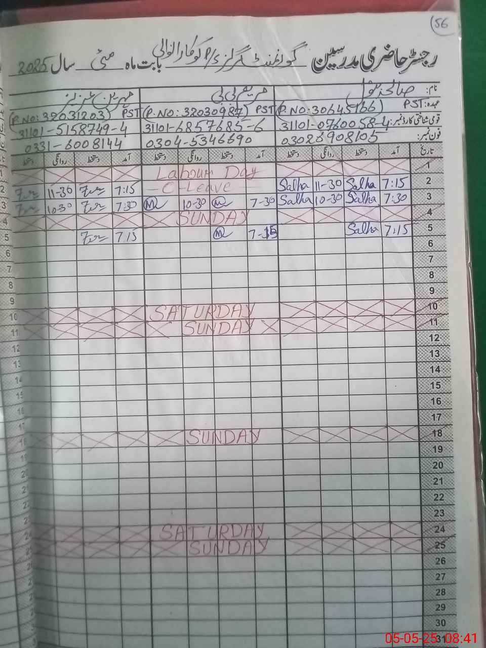 | CNIC | Full Name | Designation | R/C | Absence During Last Calender Month |