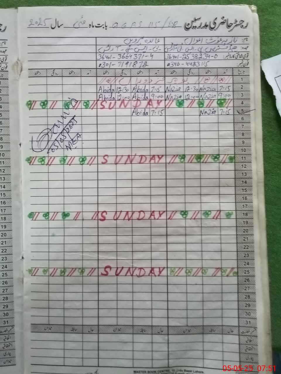 | CNIC | Full Name | Designation | R/C | Absence During Last Calender Month |