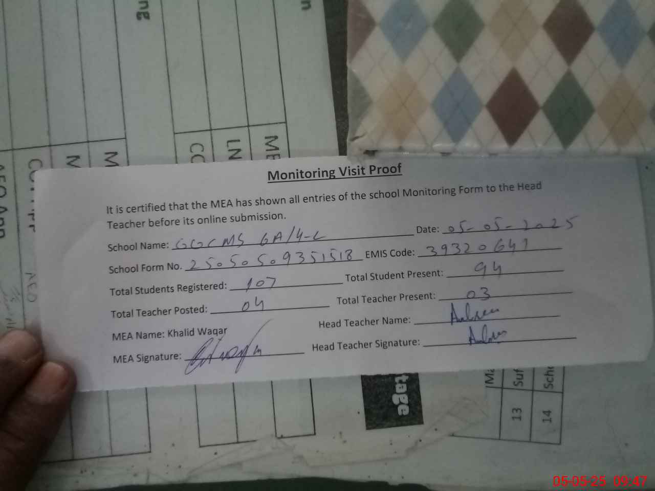 | EMIS Code: 39320641 | Name of School: GGCMS 6-A/4-L | |||