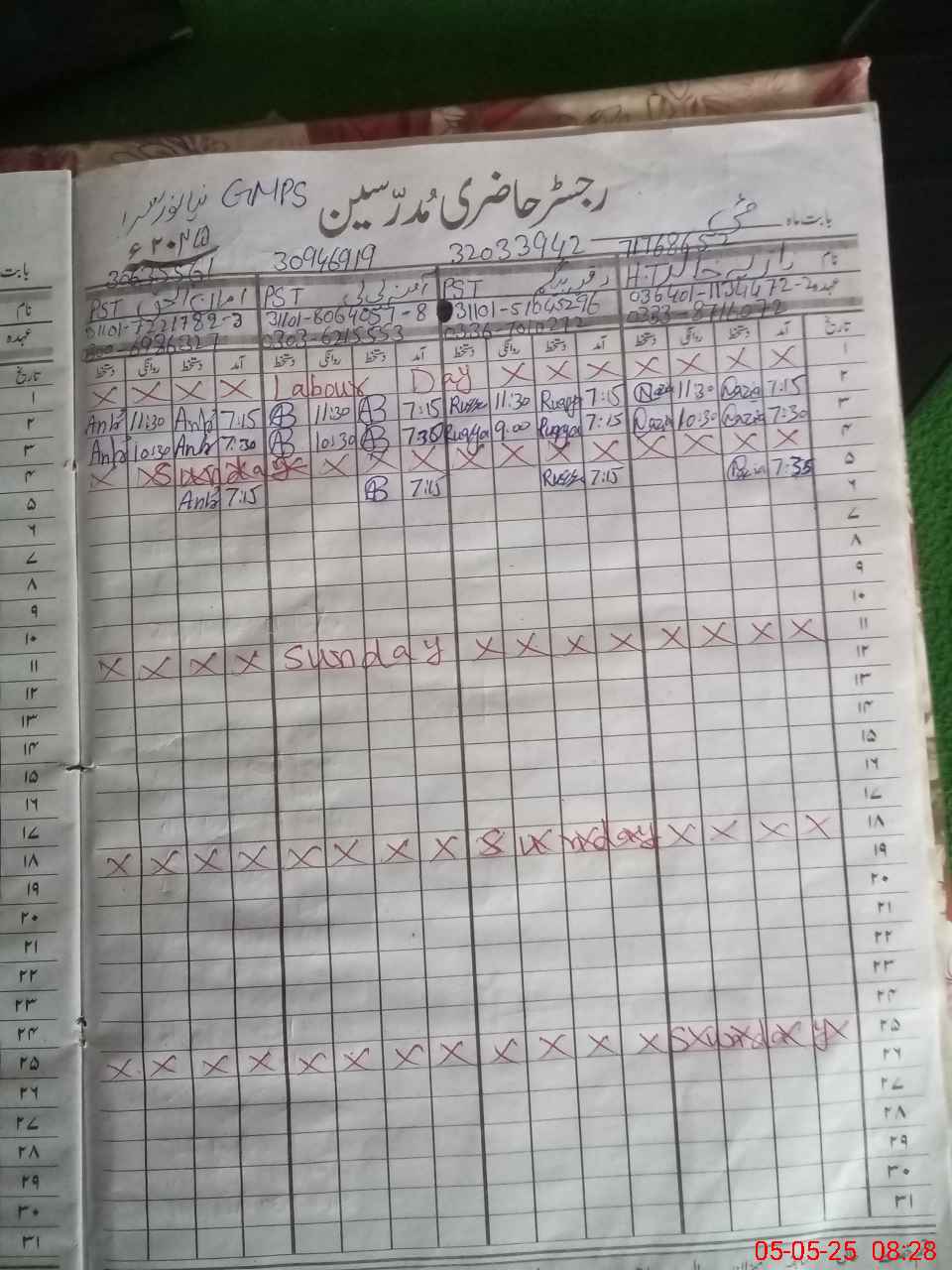 | Name: NA**** KH**** Designation: (School Headmaster's/Headmistress's) PST Phone/Cell Number: 03**** |