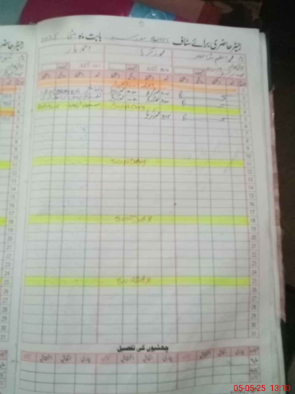 | CNIC | Full Name | Designation | R/C | Absence During Last Calender Month |